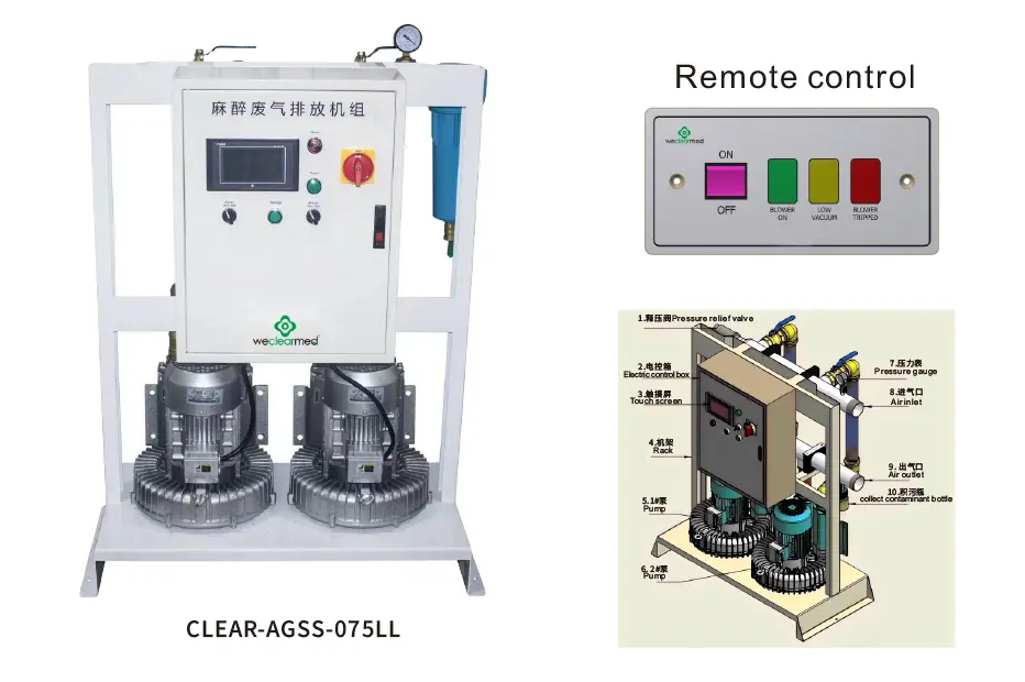1. Rezervor vizual pentru gaze de evacuare, separator de apă petrolier, sistem de spălare pentru îndepărtarea evacuării