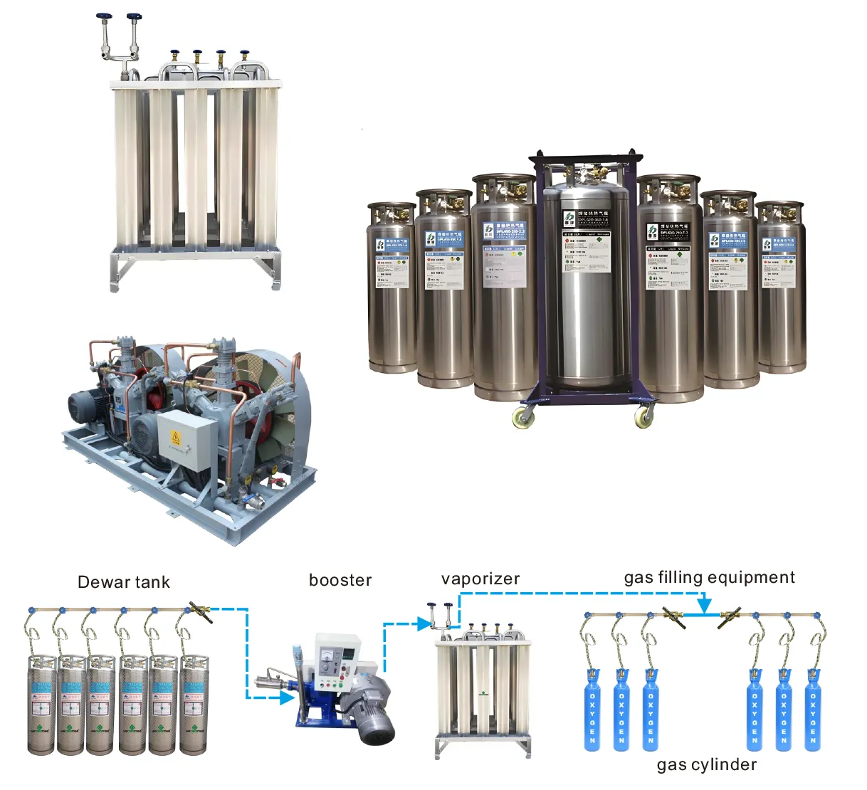 Sistemul medical de oxigen lichid este utilizat pentru producerea, depozitarea și transportul lichidelor la temperaturi joase. Este utilizat pe scară largă în industria medicală, industrială, agricolă, de apărare națională și de cercetare științifică. În comparație cu cilindrul tradițional de gaz din oțel, acesta are avantajele transportului convenabil, economisirea energiei, siguranței și fiabilității.