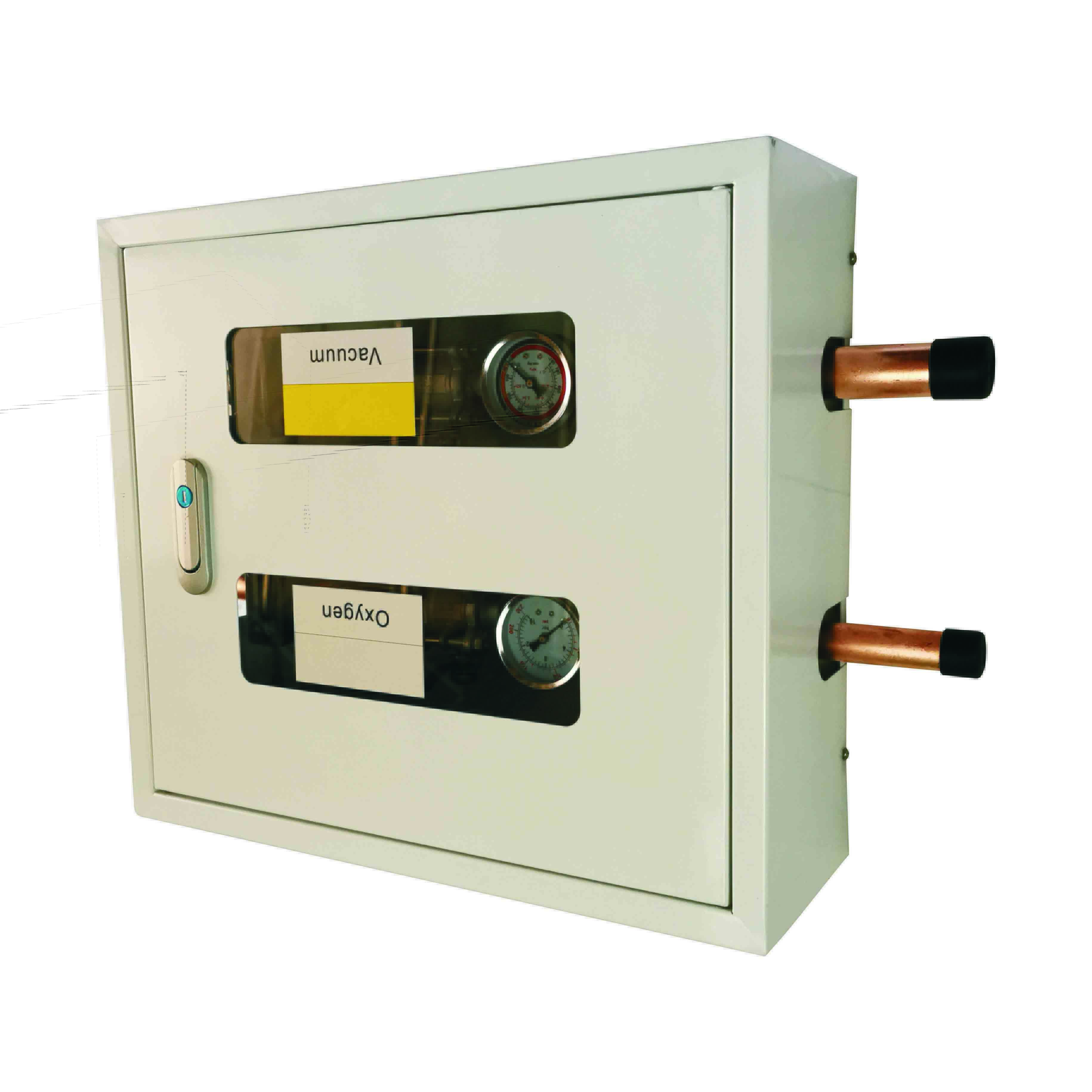 Weclearmed®Cutie cu supapă de alarmă pentru zonă de gaz medical cu două conducteeste utilizat pentru monitorizarea gazelor, adesea folosit în spitale, unde personalul medical controlează fluxul de gaz în fiecare secție.Cutie cu supapă de alarmă pentru zonă de gaz medical cu două conducteeste o cutie de supape pentru zona de gaze medicale, care include o cutie, o ușă, o încuietoare și cel puțin un set de supape. Fiecare set de supape include o conductă de admisie conectată secvenţial, o supapă, o conductă intermediară, un barometru şi o conductă de evacuare. Capătul frontal al corpului cutiei este prevăzut cu un port de întreținere, iar ușa cutiei poate fi deschisă și închisă cu portul de întreținere.